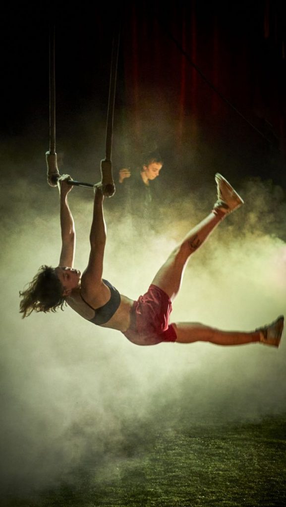 Chinese mat, hand to hand, acrodance, fabrics, swinging trapeze, fixed trapeze, flexible wire, Cyr wheel and acrobatic lifts, we will embark on an air show with raw energy punctuated by a rock’n’roll soundtrack.